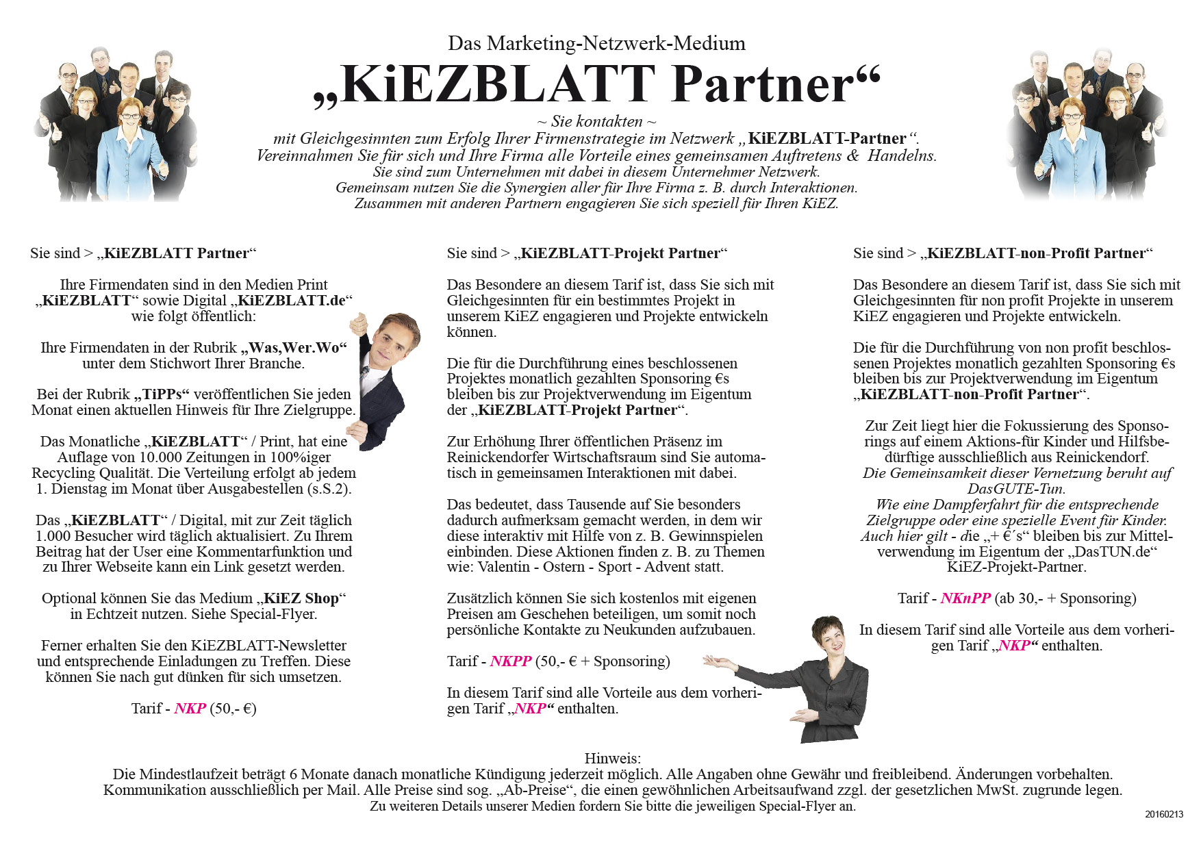 ~ Sie kontakten ~ mit Gleichgesinnten zum Erfolg Ihrer Firmenstrategie im Netzwerk „KiEZBLATT-Partner“. Vereinnahmen Sie für sich und Ihre Firma alle Vorteile eines gemeinsamen Auftretens &  Handelns.