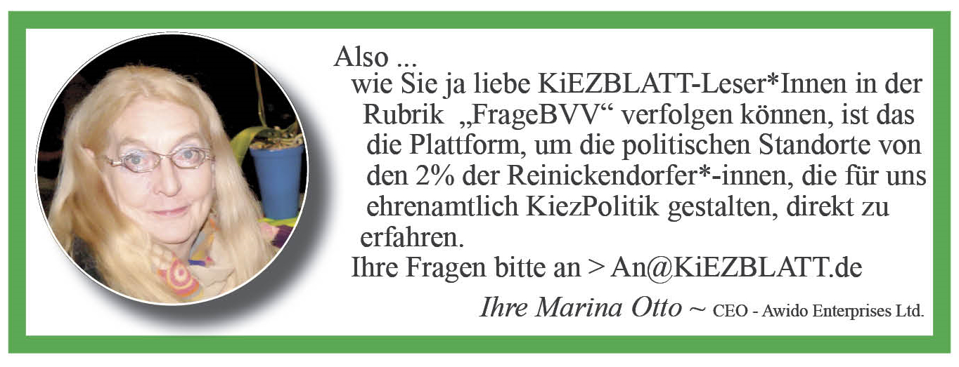 Auszüge aus einer PM-Mail – …zur Beleuchtung am S-Bahnhof Alt-Reinickendorf Stellung nehmen:Grundsätzlich werden in Berlin Grünanlagen nicht beleuchtet. Es gibt mehrere ähnliche Orte in Reinickendorf, an denen eine nächtliche Beleuchtung ebenfalls wünschenswert wäre, dem Bezirksamt aber vom SPD-geführten Senat aus dem genannten Grund nicht zugestanden wird. Unabhängig davon hat die Baustadträtin Katrin Schultze-Berndt den zuständigen Fachbereich kürzlich darum gebeten, mit dem Senat Kontakt aufzunehmen und prüfen zu lassen, ob hier nicht doch eine Beleuchtung ausnahmsweise sichergestellt werden könnte, denn es handelt sich in der Tat um einen wichtigen Verkehrsweg… Björn Wohlert…