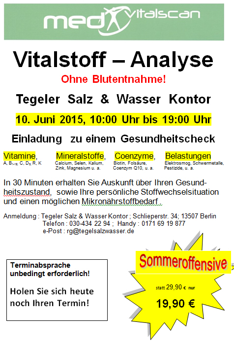 … in nur 30 Minuten können Sie eine Analyse, bei mir im Geschäft, über Ihren Gesundheitszustand bekommen.