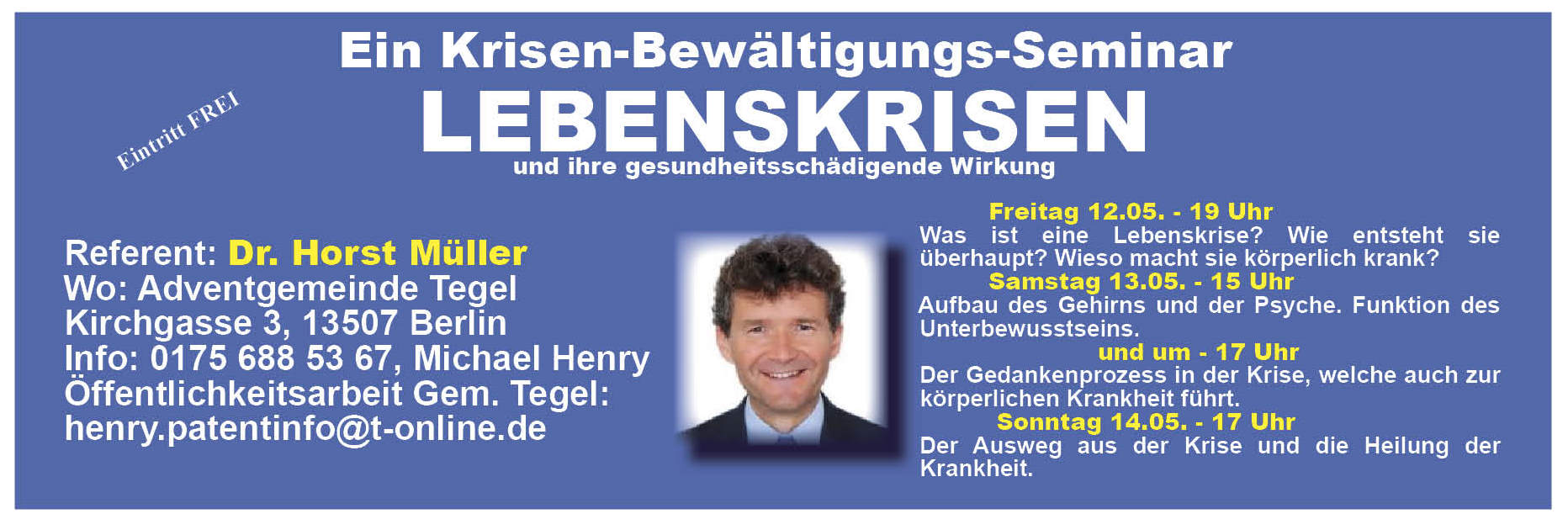 Wo: Adventgemeinde Tegel – Kirchgasse 3, 13507 Berlin