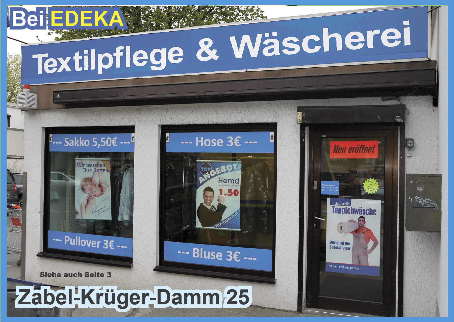 Mein Team und ich, wir haben jetzt die „Textilpflege & Wäscherei“ im Zabel-Krüger-Damm 25 – gleich bei EDEKA – übernommen. Da wir wissen, wem wir unser Einkommen zu verdanken haben, steht bei uns die Freundlichkeit Ihnen gegenüber natürlich an 1. Stelle ~ aber selbstverständlich gleich gefolgt von unserer besonderen qualitativen und professionellen Leistung.