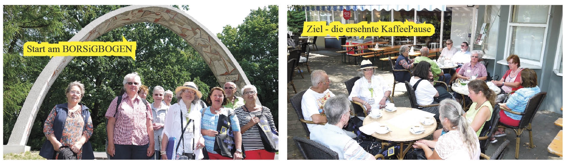 Start war am BorsigBogen und vorbei an den Schiffsanlegestellen der Reedereien, am Tegeler Ausflugslokal, am Pavillon, an den Hochhäusern „Neptun“ und „Nixe“ aus den Sechzigern, über die „6erBrücke“ (1908, auf der in alter Manier ein“Sechser“ für die Brücken Hin- und Rücktour von uns „erhoben wurde“).