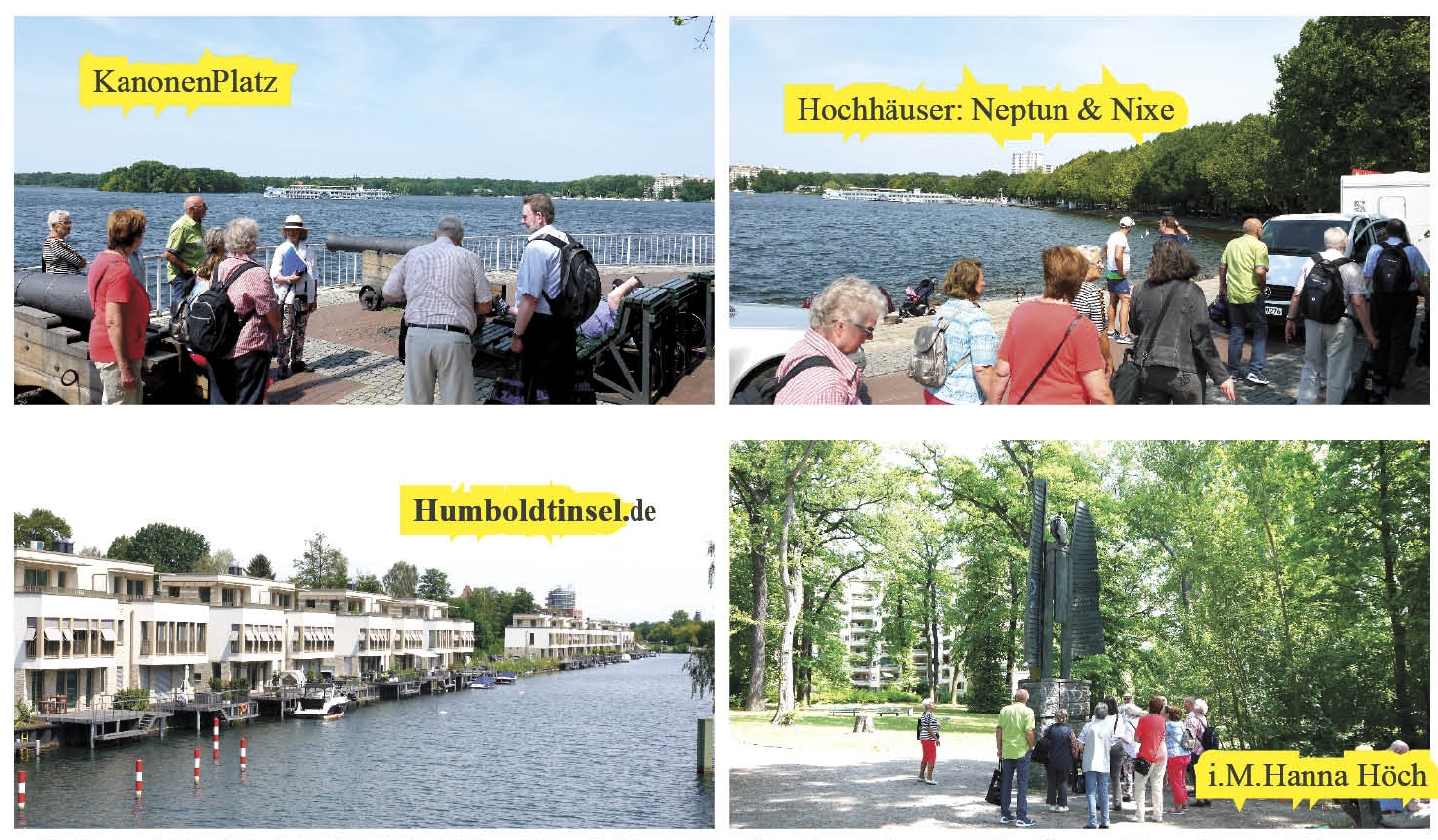 Bei diesem Spaziergang im Juli führte die zertifizierte Berliner Stadtführerin, Frau Anna Haase unsere Gruppe von max. 10-12 Personen, am Ufer des Tegeler Sees entlang der Greenwich-Promenade (Partnerstadt, Greenwich/Großbritannien) bis zur „Dicken Marie“. Das alles bei wunderbarem Wetter – frischer gesunder SeeBriese – herrlicher Sonne unter den „Dächern“ beeindruckenden Baumbestandes & interessanten Highlights-Infos und immer das SeeAmbiente im Hintergrund.