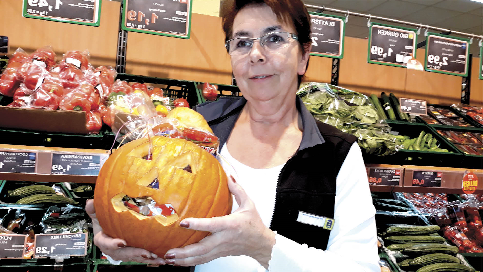 Malt uns ein KÜRBIS-Bild in der Größe eines A4 Blattes und gebt dieses an einer Kasse bei uns mit Eurem Vornamen und Telefonnummer auf der Rückseite ab. Wir werden die 3 Besten wie folgt veröffentlichen und prämieren: