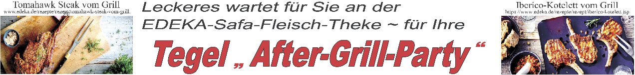 Nach Ihrem „Sightseeing“ in Tegel-City geht´s, bevor die Füße ganz schwer werden, zum Einkaufen für Ihre abendliche kleine private „Tegel-After-Grill-Party“ ~ „Corona“ kann uns manches verwehren ~ aber nicht unser Grillen im Garten oder auf Balkonien – Guten Appetit!