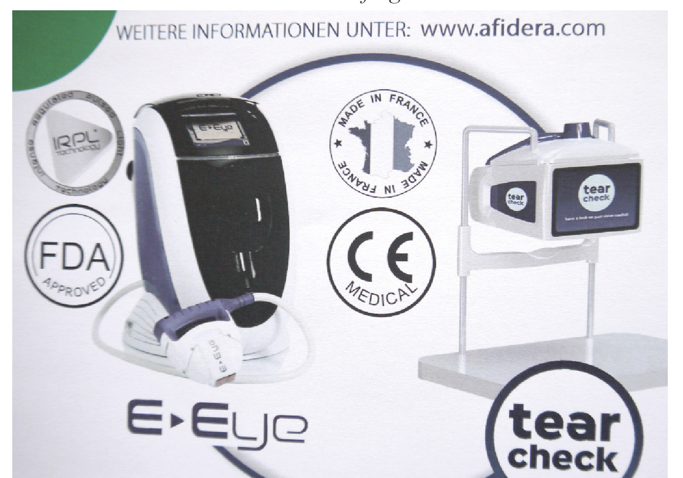 Da die Wissenschaft heute weiß, dass die Ursache für „Trockene Augen“ zu 80% an der Meibomdrüsen-Dysfunktion (Drüsen, die sich hinter der Wimpernreihe von Ober- und Unterlid befinden) liegt, hat man sich erst einmal um dieses Problem gekümmert und eine entsprechende Technologie für Diagnose (tear check – schmerzlos, 5 Minuten) und Therapie (E-Eye) entwickelt. Die Meibomdrüsen produzieren ein öliges Sekret, welches die Tränenflüssigkeit vor einer zu starken Verdunstung schützen soll. Nehmen die Lipide im Tränenfilm ab, wird dieser rissig und instabil, es entsteht folglich ein „Trockenes Auge“.
