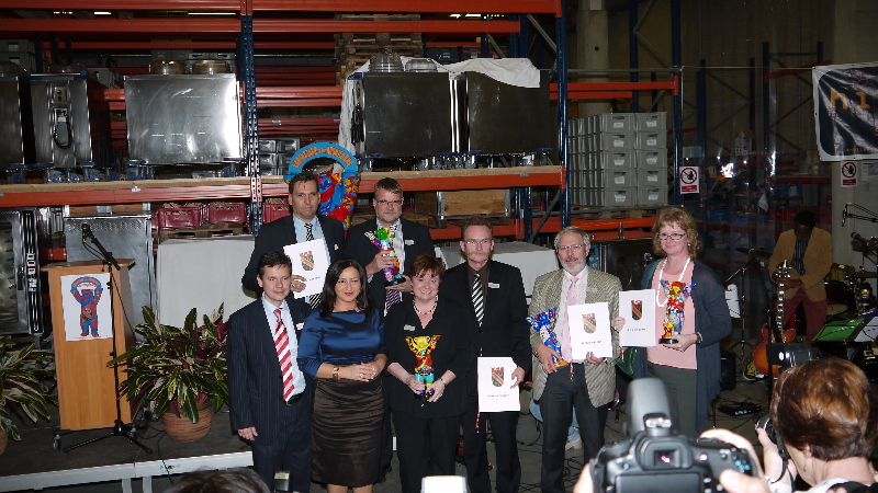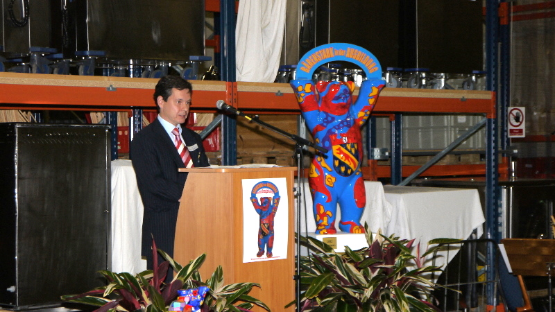 Gastgeber war die Firma integra, im letzten Jahr Preisträger des Buddy Sonderpreises, in der Lengeder Str. 48, vertreten durch den Geschäftsführer Herrn Bubenheimer, der das Event inmitten seiner Lagerhalle platzierte. Gerade dieses Ambiente unterstrich das Thema Ausbildung. Die seit 33 Jahren bestehende integra betreibt als Integrationsbetrieb – Partyausstattung – Reinigungs-Services.