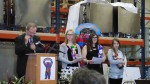 Herr Gutheil, von der regionalen Schulaufsicht überreichte anschließend die Preise an die Schülerinnen. Aus 76 Vorschlägen wurden 3 Preisträgerinnen ausgesucht: 3. Platz > Josephine Rost, 2. Platz > Celina Müller, 1. Platz Alenka Marecetu, alle von der Bettina-von-Arnim-Schule, den Sonderpreis für Integration erhielt Stella Offenburg von der Paul-Löbe-Schule. (Bild mit Herrn Pätzold v.l.n.r.)