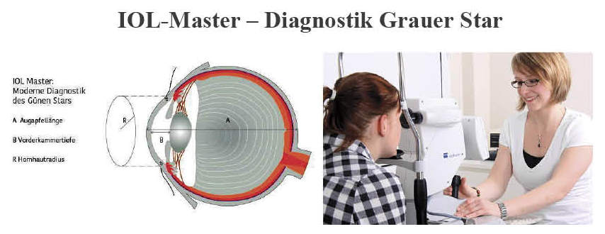Bei Patienten mit: Glaukom (grüner Star); Glaukom-Erkrankung in der Familie; auffällige Exkavation (Aushöhlung) des Sehnervenkopfes; Veränderungen der Form des Sehnervenkopfes und erhöhter Augeninnendruck.Während eines operativen Eingriffs wird die natürliche Linse durch eine Kunstlinse – Intraokularlinse IOL – ersetzt. Um diese optimal zu bestimmen, wird vorher das Auge des Patienten genau vermessen.