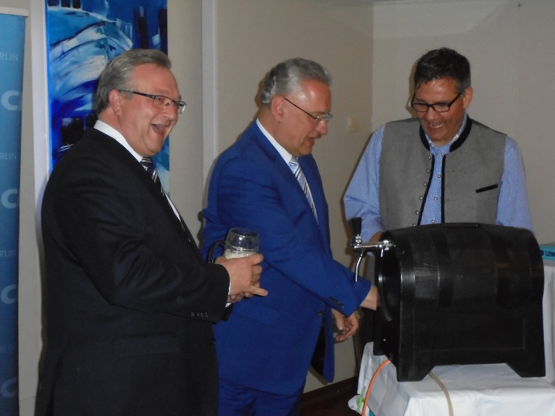 Als begleitende Geste wurden im Rahmen eines zelebrierten traditionellen Maibock-Anstichs durch den Gast aus Bayern 100 Liter Freibier an die Anwesenden ausgeschenkt.