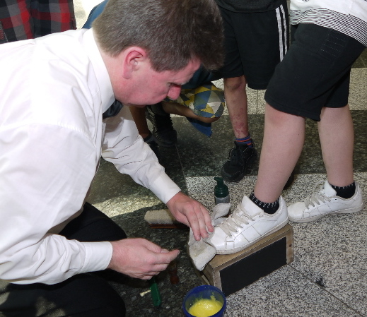 Am KiEZBLATT-Stand war u. a. auch in diesem Jahr wieder Krai Bruchmann – Reinickendorfer Heimatdichter und Nachhilfelehrer – in seiner Eigenschaft als Event-Schuhputzer sehr aktiv.