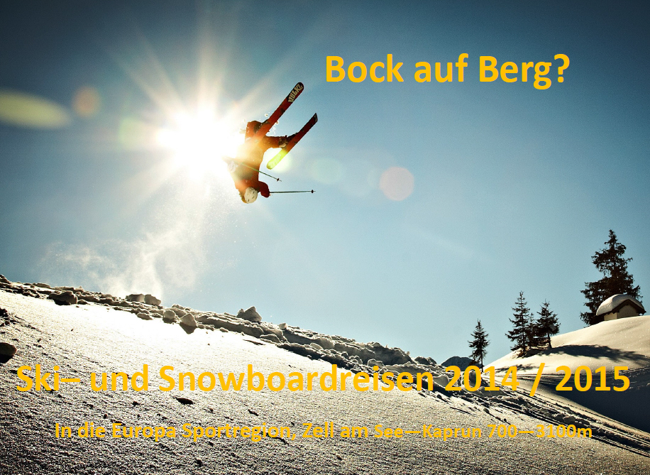 Wir bieten Euch Schneesportreisen in das 5 Sterne Skigebiet Europa Sportregion. Mit der Schmittenhöhe und dem Kapruner Gletscher bieten wir Euch höchstmögliche Schneesicherheit. Unser All-Inclusiv-Angebot für Jugendliche bis 18 Jahre (für Ältere mit Aufpreis) bringt Euch maximalen Spaß im Schnee und ein umfangreiches rundherum Angebot. Wir freuen uns auf Euch!