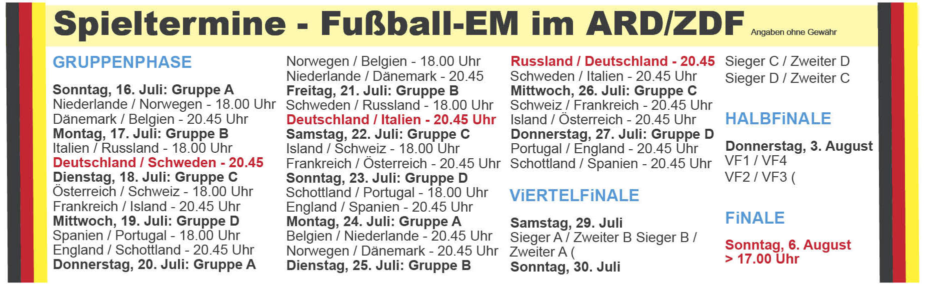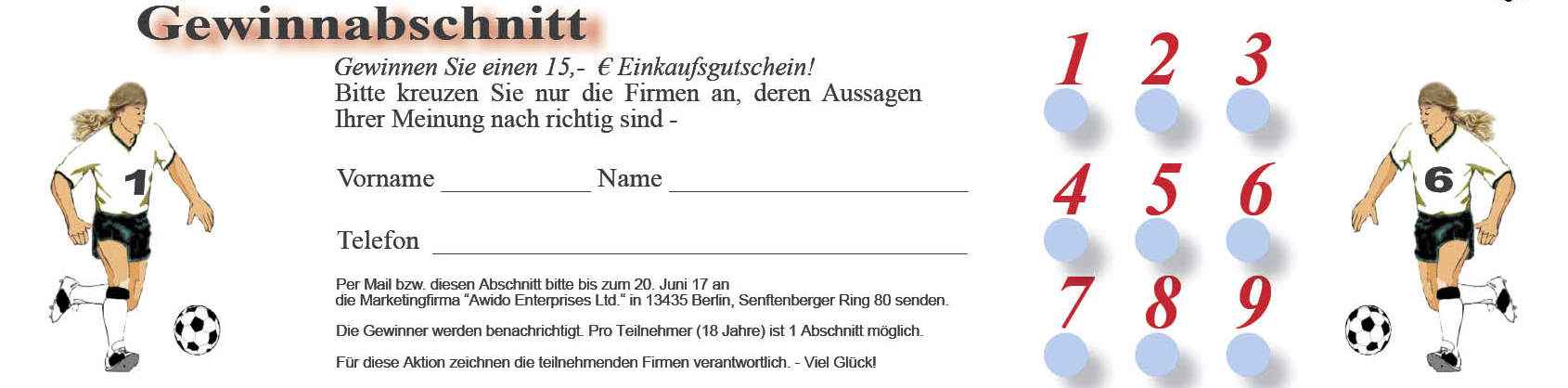 An dieser Stelle ein besonderes DANKESCHÖN diesen tollen Women´s-Fan-Firmen. In diesem KiEZBLATT fragen wir – welche Firma hat die richtige Vorhersage bei den Gruppen-siegern gemacht – im Juli stellt sich natürlich die Frage nach der Siegermannschaft.