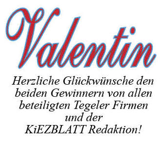 Unter den Einsendungen wurde von ihr die Bewerbung von Herrn Frank und Herrn Patrick Z. gezogen. Herr Frank erfreute die Apothekenmitarbeiterin, Frau Karin Budach in Tegel und Herr Patrick Z. (Foto) machte in seiner Bewerbung eine erneute Liebeserklärung an seine Frau – Zitat: „Zum Valentinstag möchte ich mal meinem Schatz Jasmin überraschen und ihr zeigen, dass ich sie liebe – ich war 13 sie war 11 – jetzt ist sie meine Ehefrau und Mutter unserer 3 Kinder (Zwillinge)“!