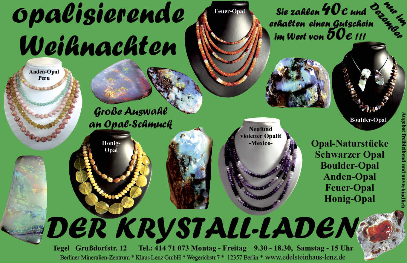 DER KRYSTALL-LADEN in Tegel, Grußdorfstr. 12 – Telefon 030 414 71 073 – Montag – Freitag: 9:30 , 18:30 Uhr, Samstag – 15 Uhr