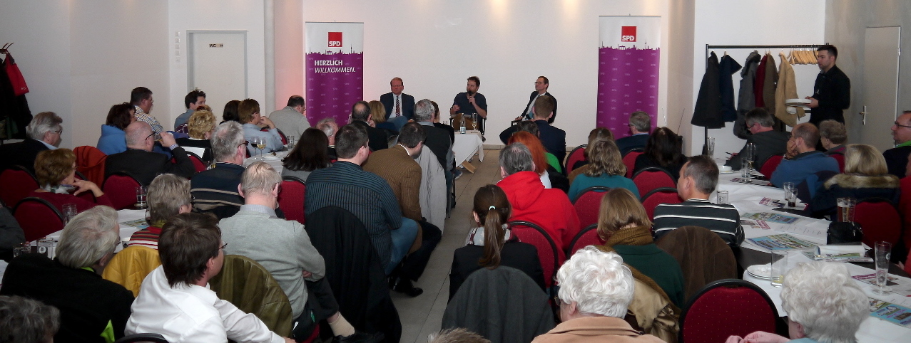 Im März gelang es dem Abgeordneten Herrn Thorsten Karge (2.v.r.) den Regierenden Bürgermeister, Michael Müller, nach Reinickendorf in das gegenüber dem Rathaus liegende freundliche Restaurant „Maestral“ zu bekommen, um den Reinickendorfer/innen die Möglichkeit zu geben, etwas über die ersten 100 Regierungstage von Herrn Michael Müller zu hören.