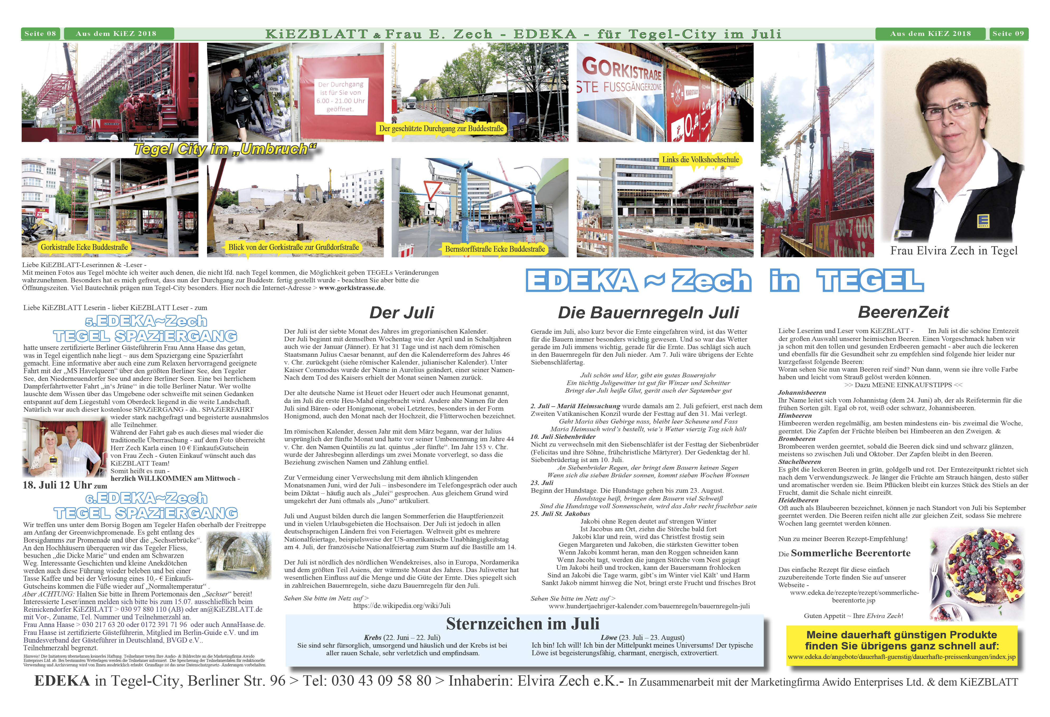 www.hundertjaehriger-kalender.com/bauernregeln/bauernregeln-juliEDEKA in Tegel-City, Berliner Str. 96 > Tel: 030 43 09 58 80 > Inhaberin: Elvira Zech e.K.- In Zusammenarbeit mit der Marketingfirma Awido Enterprises Ltd. & dem KiEZBLATT
