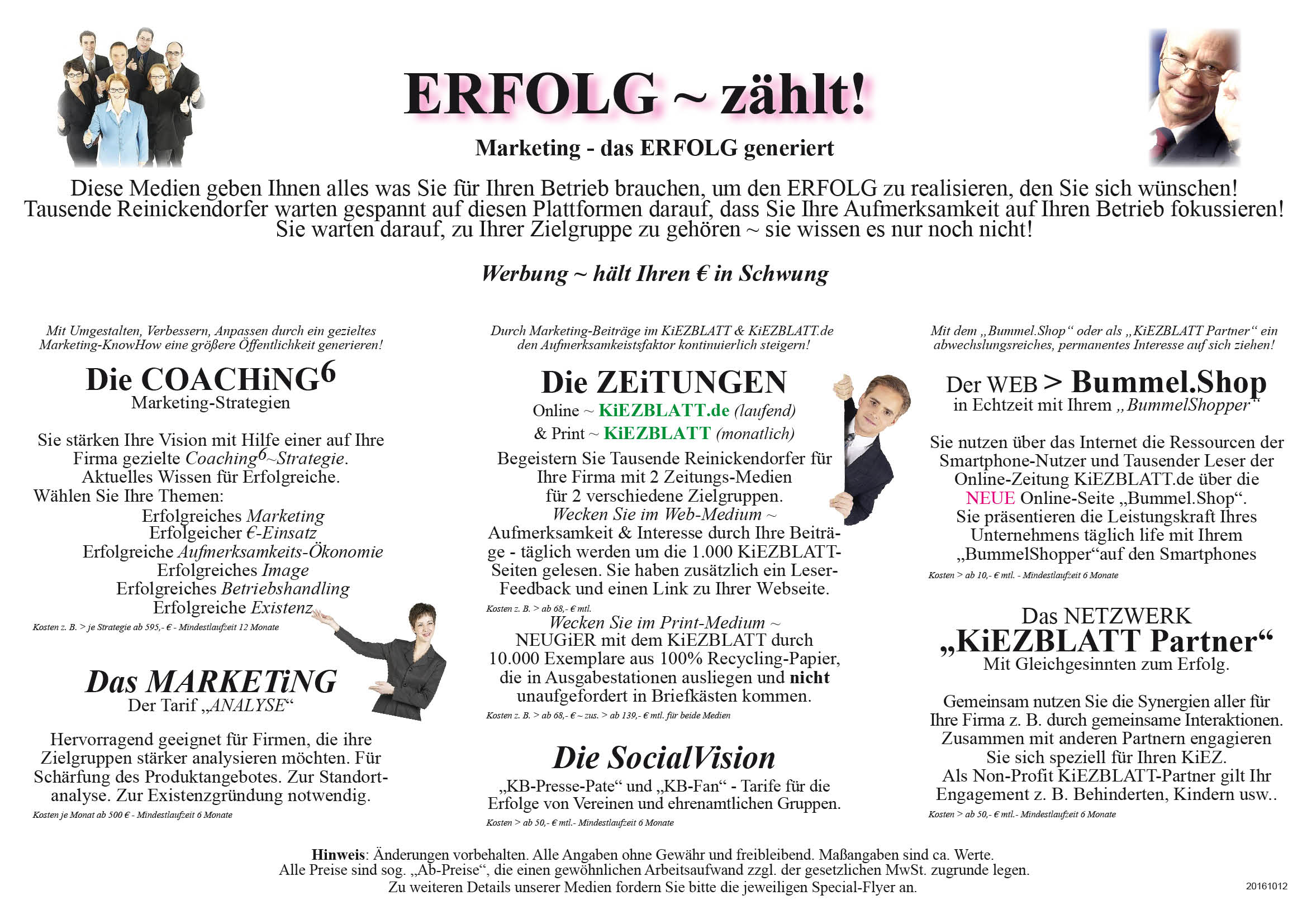 Der Erfolg unserer Werbepartner liegt in einer gezielten und abgestimmten Werbe-Marketingstrategie zu ihren Zielgruppen ~ zu den Kaufkraft-Ressourcen der Tausenden von KiEZBLATT-Lesern*innen ~ und das Monat für Monat.