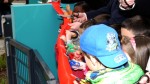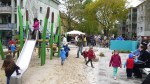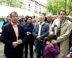 Herr Balzer wollte ansetzen – aber da kam schon gleich ein Flieger – dann aber: „ … Es ist toll was sich hier entwickelt hat … ein Dankeschön auch an die Senatverwaltung für Stadtentwicklung für das Geld, was hier zur Verfügung gestellt wurde … toll, erstklassig geglückt … es geht darum das jeder für sich einen kleinen Beitrag zur Sauberkeit leistet, damit sich alle wohlfühlen können … Anschließend durften die Kinder das „Rote Band“ zusammen mit Herrn Balzer und Herrn Lambert durchschneiden.