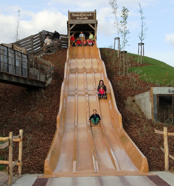 Kartoffelsack-Rutsche, Wackel-Fahrräder, Traktoren und andere Fahrzeuge, Piratennest und Ponyreiten bieten Spaß ohne Ende. Von den 36 Attraktionen sind 34 kostenlos. Während die Kids ihrem Vergnügen nachgehen, können die Eltern in Hofläden stöbern, frisches Obst, Backwaren u.a. kaufen oder in Restaurants ausspannen. Es gibt auch Angebote für alle Altersklassen: Irrgarten, Traktorfahren und vieles mehr.