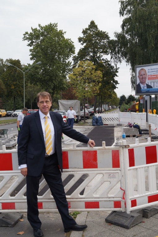 Bild: BA Rdf – Bezirksstadtrat Martin Lambert wenige Tage vor Fertigstellung des Bauabschnitts.