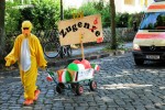 Den viel belachten Abschluss bildete die „Zugente“. Unter dem Entenkostüm schwitze erheblich Vater Schmidt, der sich hinterher mit Sohn Benjamin – wie fast alle übrigen Teilnehmer- unter das begeisterte Publikum mischte.