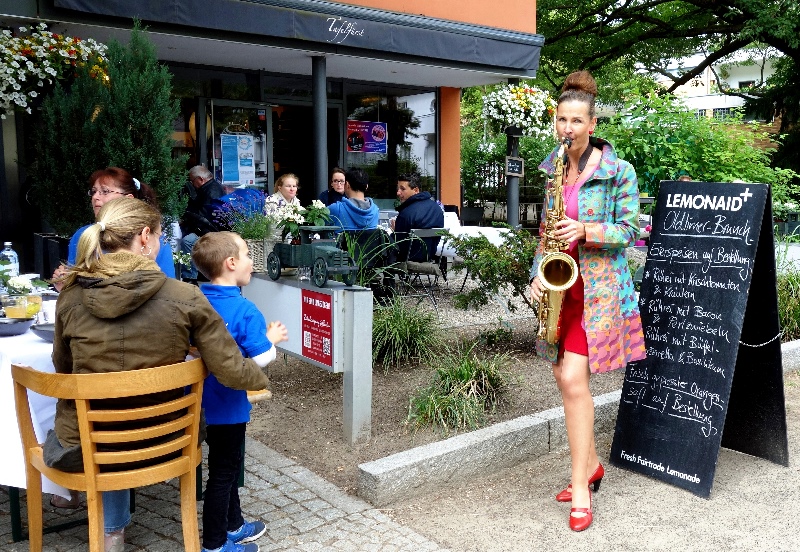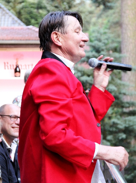 kkkk.kb124.fete2.IMG_7924NONSTOP Klasse Darbietungen von „Dr.Ko&Friends“, “Famous Tax feat“, „Cross Pops“, „Frohnau Citylights“ und als Höhepunkt die Kultband „Ulli und die Grauen Zellen“. Während der RBB-Reporter noch Daniel Barenboim und die “Staatsoper für alle“ auf dem Bebelplatz begleitete, begann die Band schon locker mit dem Techniker als Sänger-Ersatz. Diese spontane Einlage kam so gut an, dass er nicht ohne Zugabe entlassen wurde, selbst als der Boss schon neben ihm auf der Bühne stand. Doch Ulli steigerte die Publikumsbegeisterung noch weiter. Das Enfant terrible gab alles, sprang singend auf Bänke und Tische, enterte sogar die Champagner-Bar auf der Empore des Hauses, bevor das begeisterte Publikum ihn kaum ziehen lassen wollte. Gratulation an den „Tafelfürst“, der dem Publikum einen wunderbaren Tag, nicht nur wie sonst mit leckeren Speisen und Getränken, sondern zusätzlich mit einem Wahnsinns-Programm geboten hat.