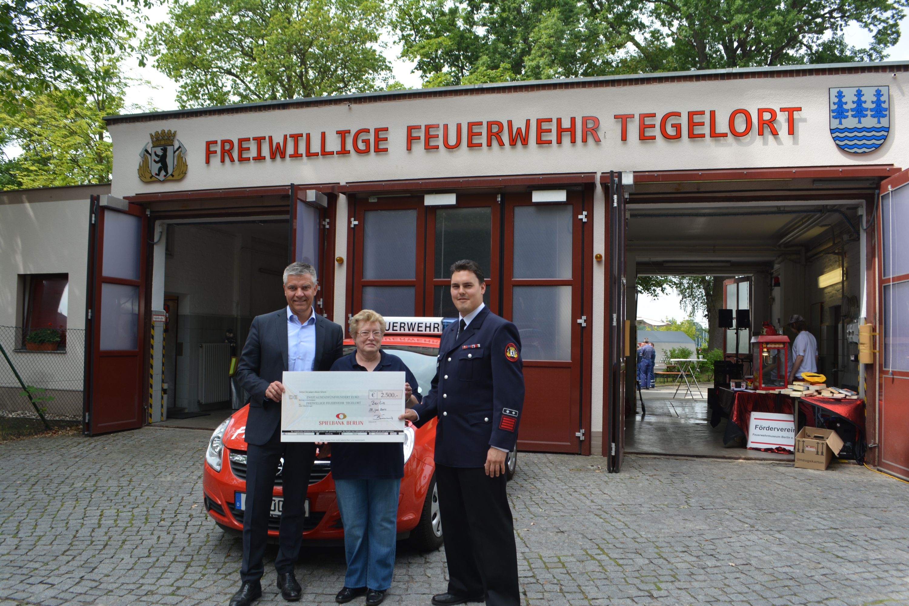 Gern kam er daher der Bitte der Freiwilligen Feuerwehr Berlin Tegelort nach und vermittelte den Mitgliedern eine Spende der Spielbank Berlin in Höhe von 2.500 Euro. Mit dem Geld verbessert der Förderverein die Rahmenbedingung für die Ausbildung der ehrenamtlichen Feuerwehr.
