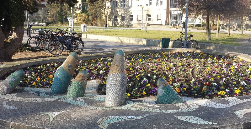 Foto (byFHM): Bunte Bepflanzungen, wie hier am Rathaus Reinickendorf, könnten bald auch auf den Schulhöfen vom Frühling künden.