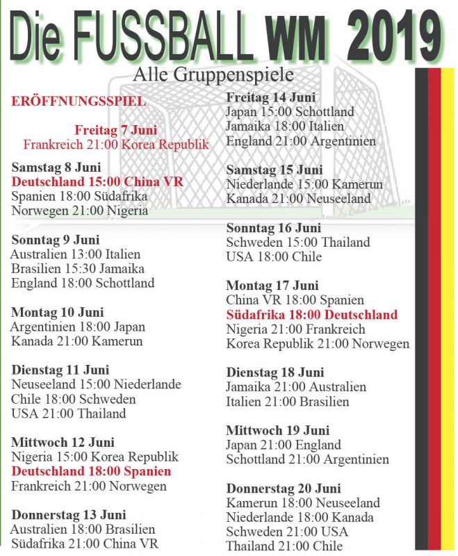 Fußball WM – Gruppen-Termine