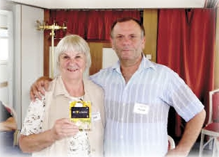 Während der Fahrt gab es auch dieses mal wieder die traditionelle Überraschung – auf dem Foto überreicht Herr Zech Karla einen 10 € EinkaufsGutschein von Frau Zech – Guten Einkauf wünscht auch das KiEZBLATT Team!
