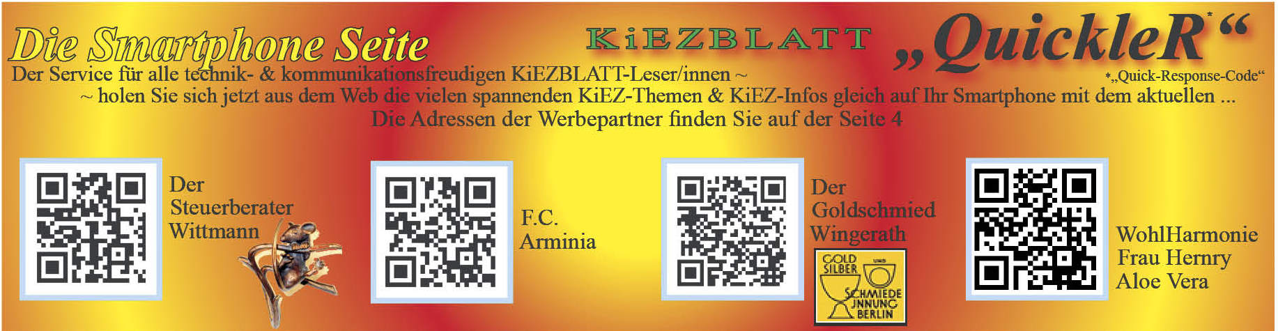 07. Januar 2015Alles Wirtschaft, QuicklerKB-Redaktion Der „QuickleR“ vom KiEZBLATT Der „KiEZBLATT“ – QuickleR, der Service für alle Smartphones! 116,117,118