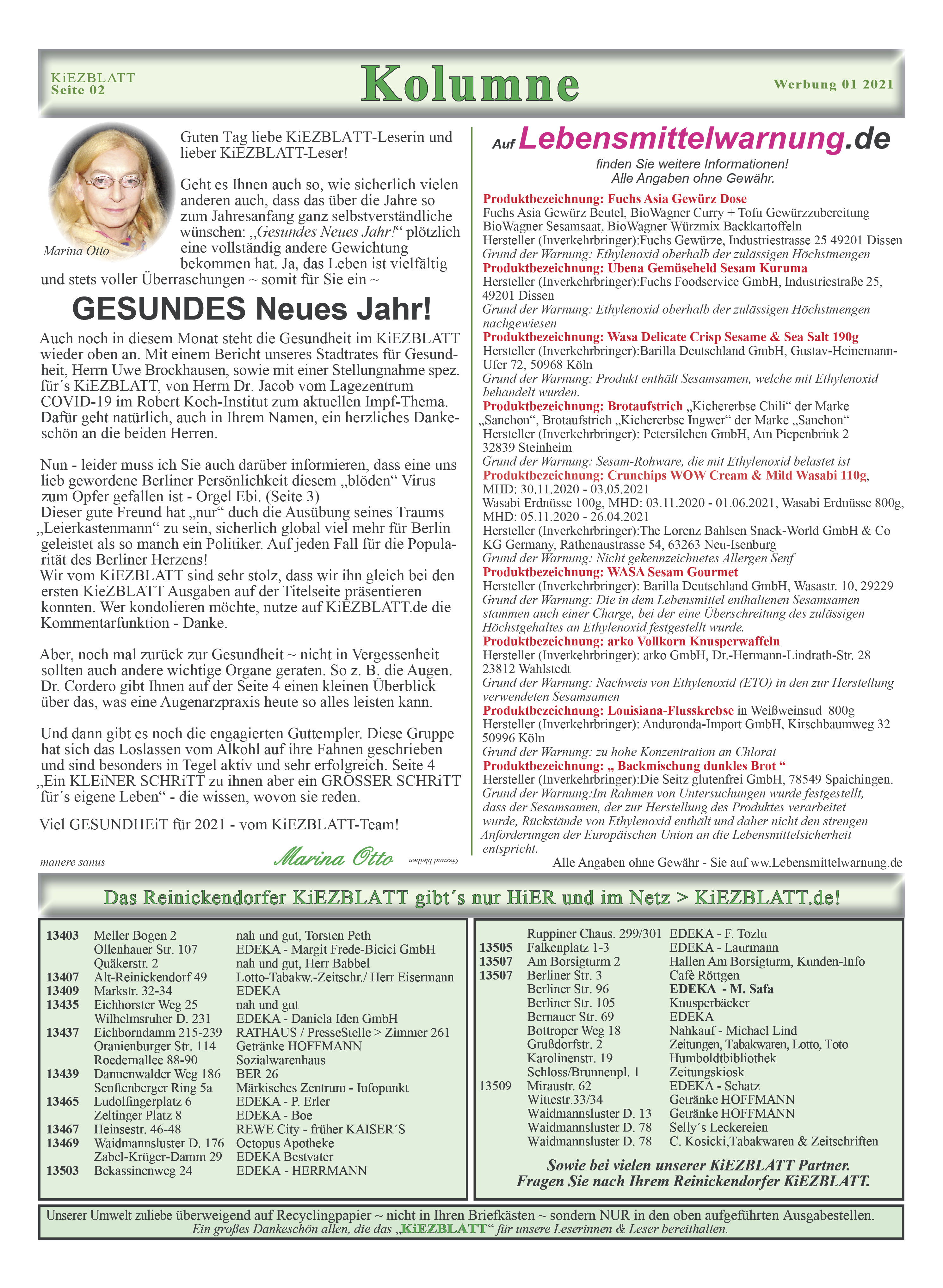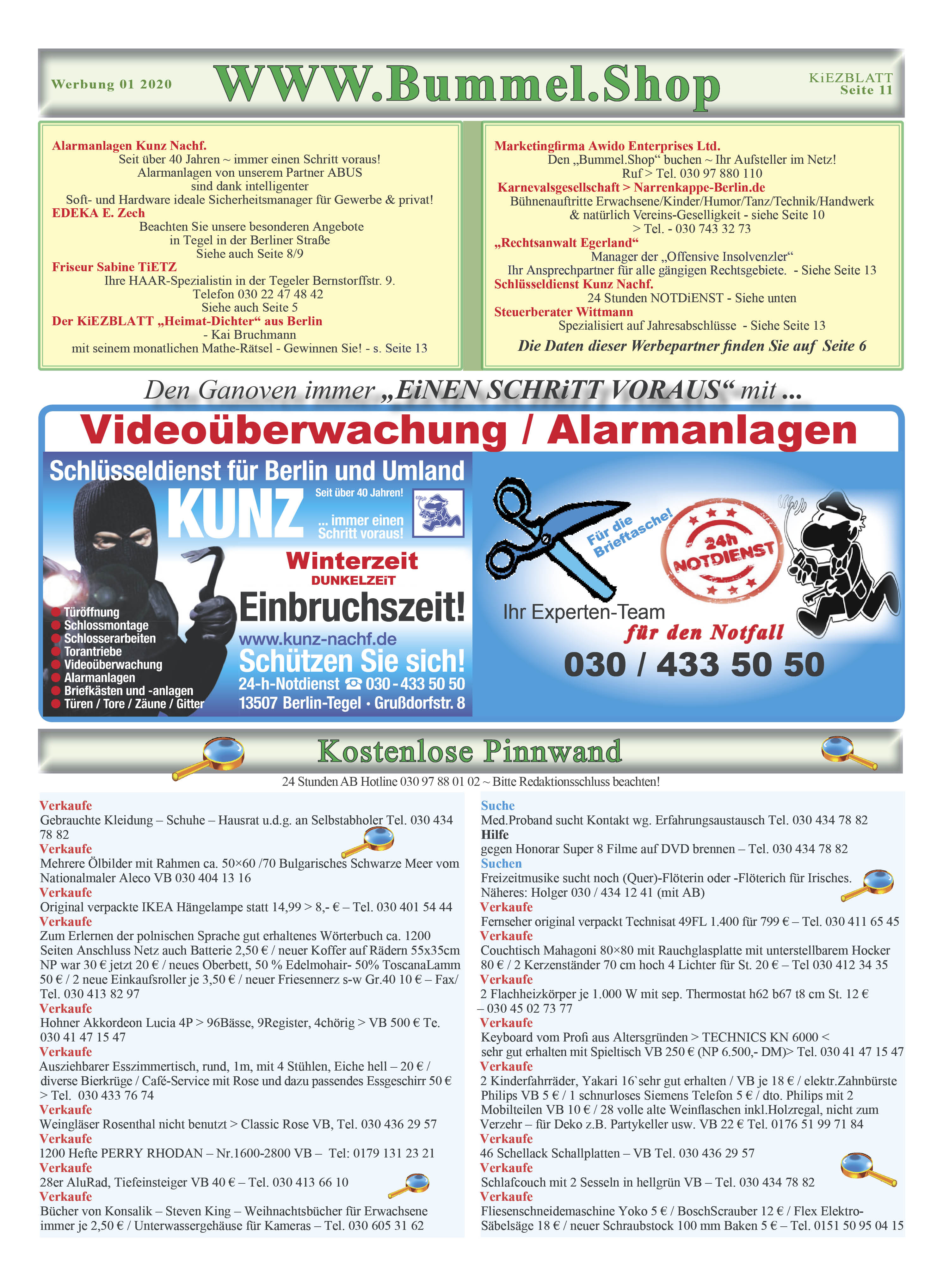 Diese Zeitung „KiEZBLATT“ erscheint ebenfalls unter „KiEZBLATT.de“, z. T. mit Links, für deren Zielinhalte wir keinerlei Haftung übernehmen.