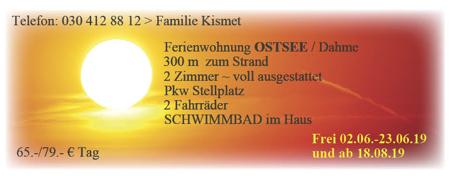 KB 171 2019 06 06 Ferienwohnung Ostsee Dahme 01. Juni 2019Volle Auflösung (905 × 355) ← Vorheriges Nächstes →