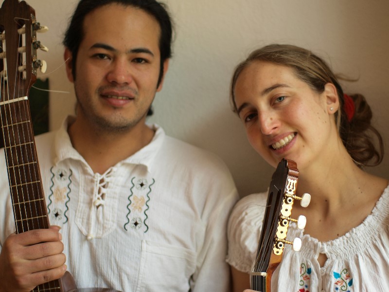 Mit sprühender Sinnenfreude lassen Aude Boucher (Gitarre) und Fernando Velasco (Gitarre, Gesang) ihr Publikum musikalisch Nahes und Fernes entdecken und entführen auf eine Reise durch Ecuador. Es geht durch melancholische und freundliche Klanglandschaften der Indios und Mestizen Ecuadors und zu den Rhythmen von Albazo, Pasacalle, Pasillo, Yarav’ oder Sanjuanito. (Auch um 17:30 Uhr am selben Ort.)