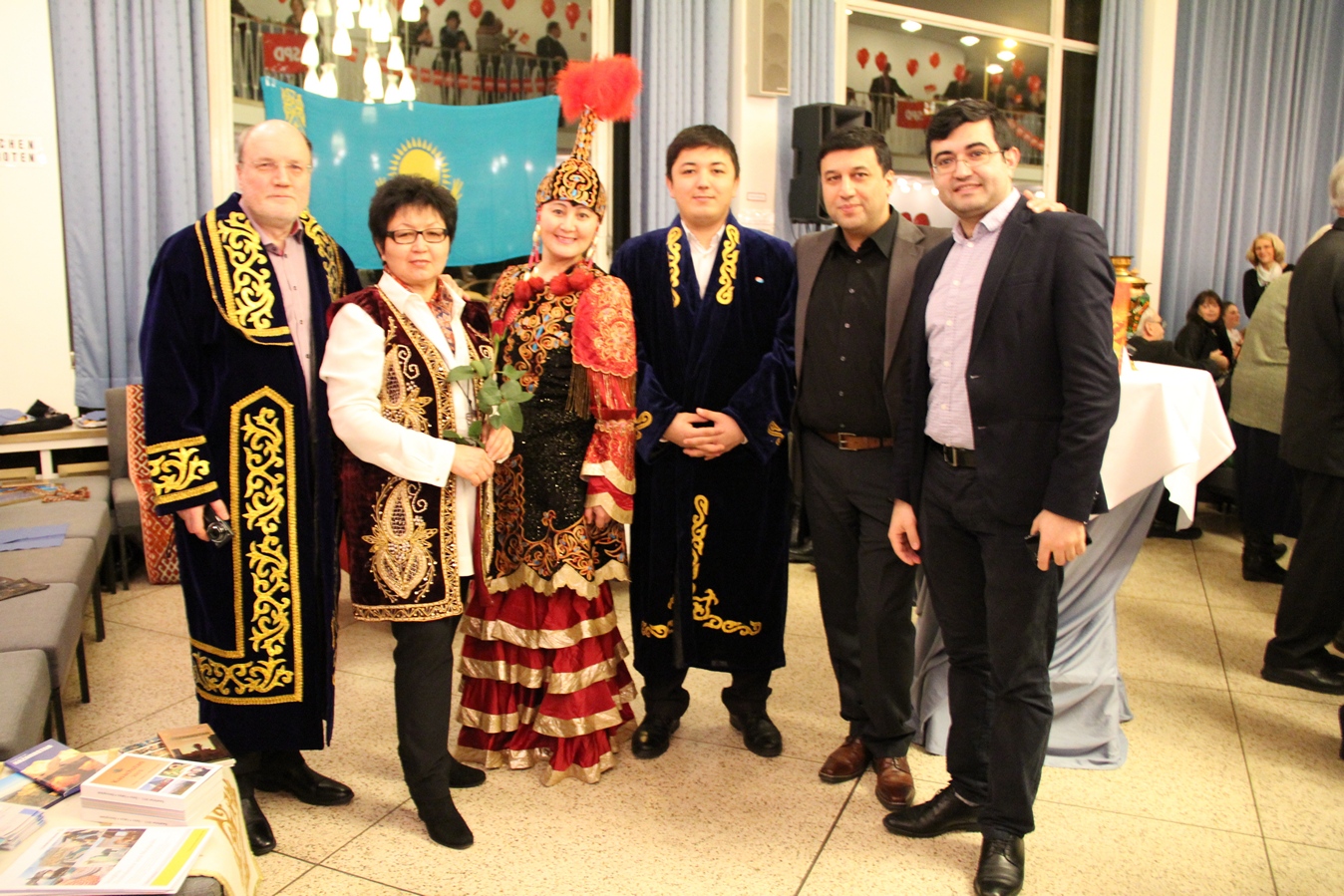 Illustre Gäste, z.B. vom Freundschaftsverein Kasachstan informierten in Originaltrachten über das kleine aufstrebende asiatische Land, das Kurfürstenpaar der Oranienburger Landesgartenschau assistierte bei der Tombola, eine Damentanzgruppe heizte ein und eine Schnellmalerin portraitierte das wechselnde Geschehen auf der Bühne. Der anfangs so stark belagerte Kicker musste schon bald der immer weiter anwachsenden Gästeschar weichen