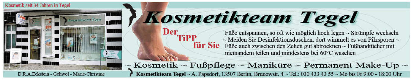 Kosmetikteam Tegel in der Brunowstraße 4 – Telefon: 030 433 43 55