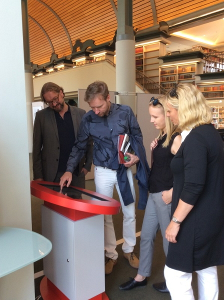 Bei einem Rundgang im beeindruckenden Bibliotheksbau mit dem neuen Leiter der Reinickendorfer Bibliotheken, Herrn Dr. Wissen, informierte sich Staatssekretär Renner über die aktuellen Themen zeitgemäßer Bibliotheksarbeit, lernte dabei auch den neu installierten eCircle kennen (ein Angebot für Nutzerinnen und Nutzer, um Onleihe-Angebote direkt aufs Leserkonto buchen bzw. downloaden zu können).