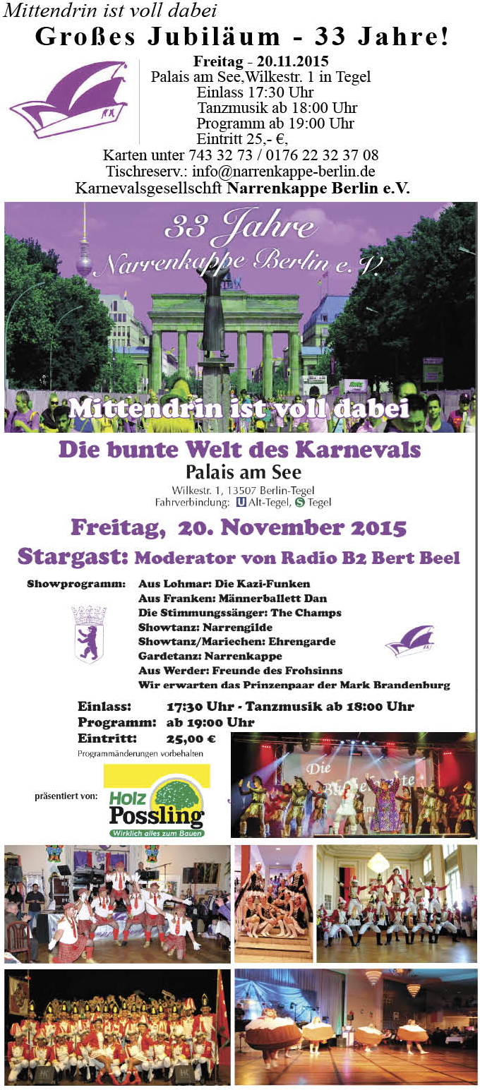 Große Faschingseröffnung Freitag – 20.11.2015 Palais am See,Wilkestr. 1 in Tegel