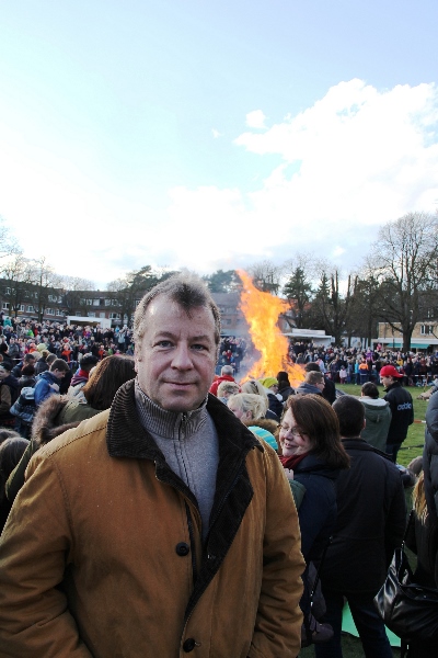 Schirmherr Bezirksbürgermeister Frank Balzer überließ diesmal das Anzünden des Feuers den Kindern. Er nutzte das gelungene Fest zu vielen Bürgerkontakten.