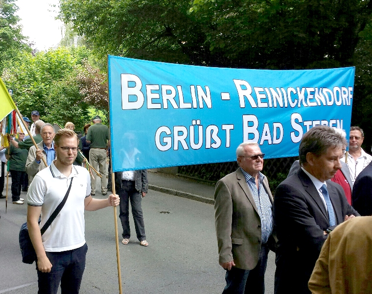 Bei dem Festumzug sendeten sie mit einem Banner Reinickendorfer Grüße an die Bad Stebener. „Jedes Jahr spendet die Gemeinde Bad Steben dem Bezirk Reinickendorf als Ausdruck der Partnerschaft drei Weihnachtsbäume inklusive Transport. Nicht nur deswegen, sondern auch weil uns eine jahrelange tiefe Freundschaft verbindet, liegt uns die Partnerschaft sehr am Herzen“, erklärt der Ortsvorsitzende der CDU Wittenau Björn Wohlert.