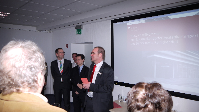Die Party eröffnete ich mit den Worten: „Die Visitenkartenparty soll dazu dienen sie zu informieren über das, was das Bezirksamt an Angeboten hat aber natürlich auch darüber, was Unternehmerinnen und Unternehmer an Unterstützungsleistungen angeboten werden kann.