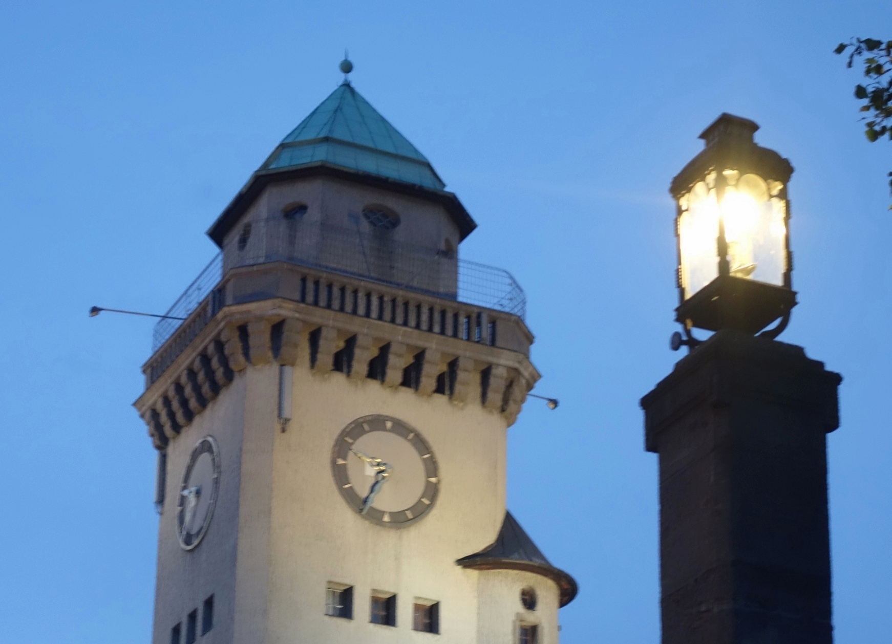 Foto 1 : Schwechtenleuchte am Ludolfingerplatz mit Kasinoturm Frohnau