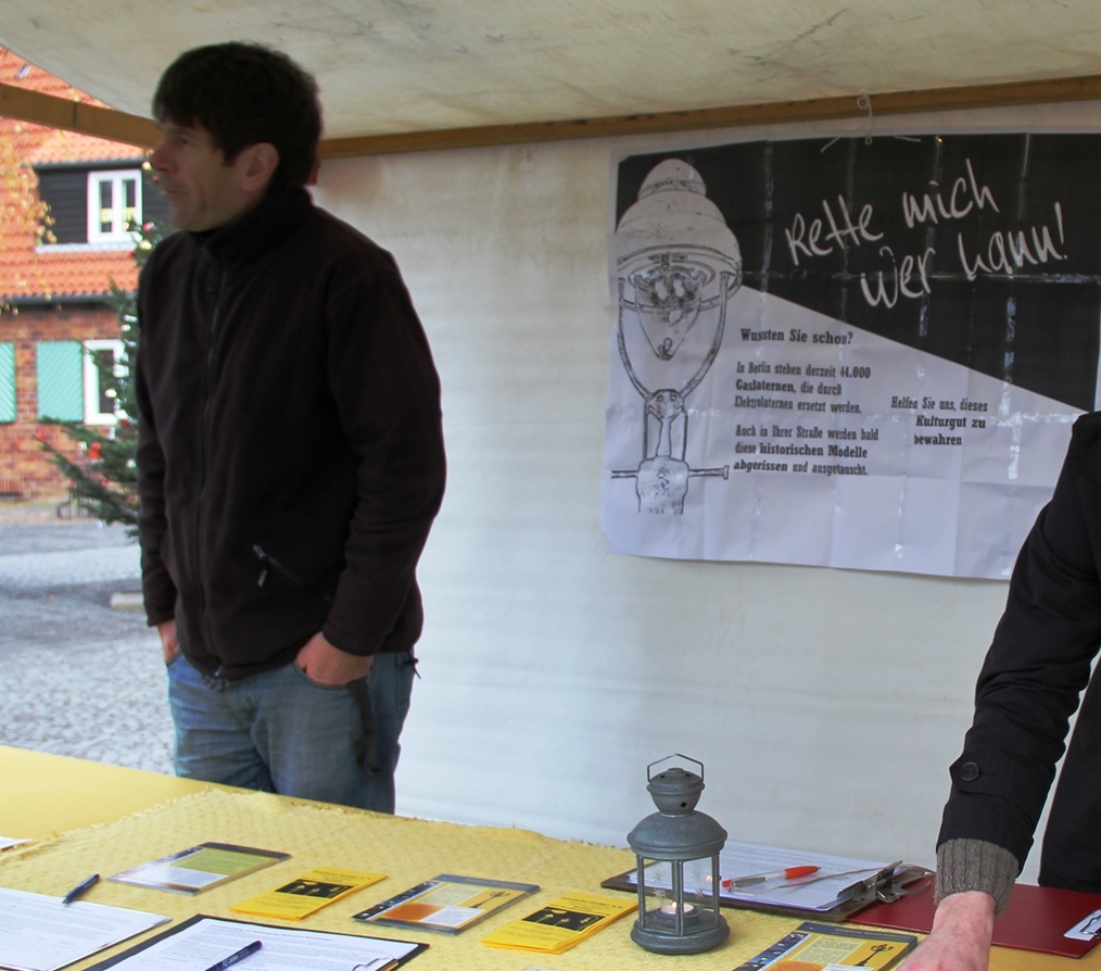 Gegen den Abbau der Gaslaternen wurde bundesweit die stärkste Online-Petition durchgeführt und in Berlin laufen Unterschriftenaktionen. Pro Bezirk sind die Unterschriften von mindestens 1000 mit erstem Wohnsitz gemeldeten Einwohnern ab dem vollendeten 16.Lebensjahr erforderlich. Die Vereine „Gaslicht-Kultur e.V.“ und „Denk mal an Berlin e.V.“ sind ebenso aktiv wie der Bürgerverein Frohnau, der z.B. auf Kunsthandwerkermärkten um Stimmen warb. Danach soll die Bezirksverordnetenversammlung (BVV) das Bezirksamt ersuchen, gegenüber der Senatsverwaltung für Stadtentwicklung auf einen Zukunftsplan Gasbeleuchtung für den Bezirk Reinickendorf hinzuwirken. Denn gerade Reinickendorf hat ortsteilabhängig einen Anteil von bis zu 80% an der Straßenbeleuchtung.
