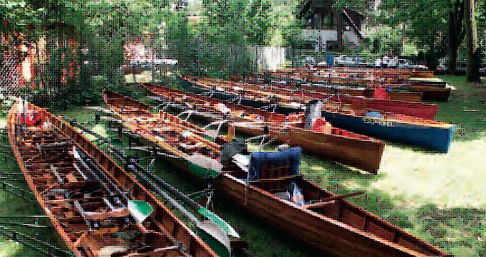Auf dem Bootsplatz kann man sich die verschiedensten Boote erklären lassen und auf dem Ergometer sogar ein kleines Rennen gegeneinander fahren.