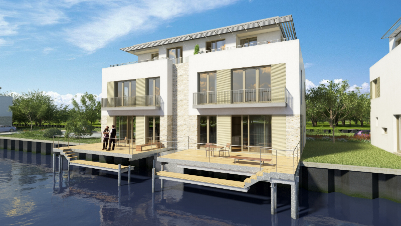 – „Schwimmende Häuser“ – sowie Steg -und Doppelhäuser, Wasserapartments und Stadtvillen.