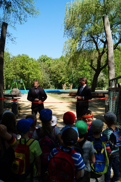 Nach einer sechsmonatigen Bauphase hat der Freizeitpark Tegel pünktlich zum schönsten Frühlingswetter seinen Spielplatz an der Campestraße wieder. Bei strahlendem Sonnenschein eröffneten Bezirksbürgermeister Herr Frank Balzer und Bezirksstadtrat Herr Martin Lambert vor rund 50 neugierigen Kinderaugenpaaren den neu gestalteten Abenteuerspielplatz.