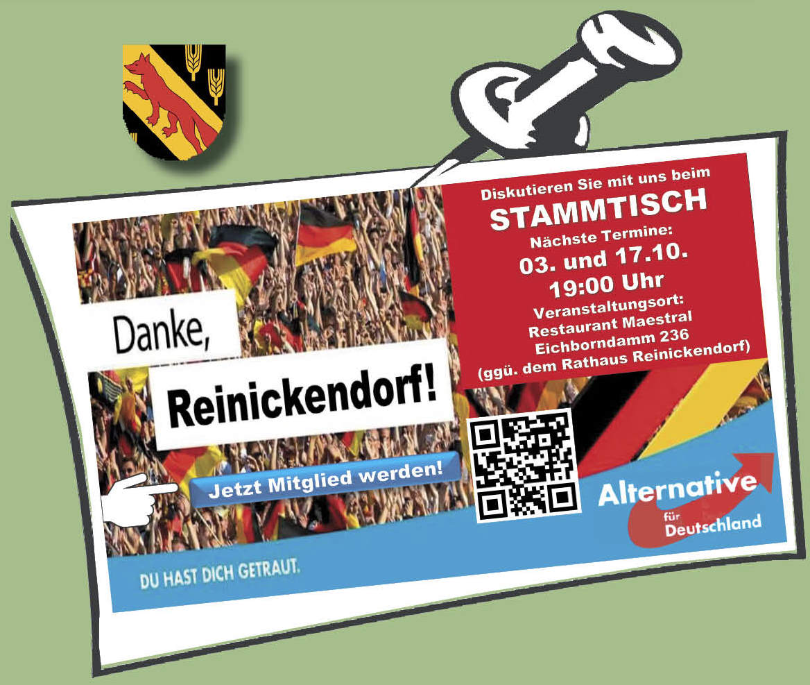 01. Oktober 2017.Alles Rathaus, Fraktion AfD, TermineKB-Redaktion STAMMTiSCH > Danke Reinickendorf DU HAST DiCH GETRAUT. ~ Jetzt Mitglied werden!