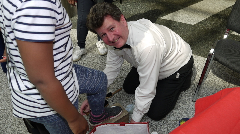 Foto: Am KiEZBLATT-Stand engagierte sich in diesem Jahr unser KiEZBLATT Partner, Herr Bruchmann (Nachhhilfelehrer, Heimatdichter und Event-Schuhputzer – www.der-schuhputzer-berlin.de) für die Kids und putzte ihnen kostenlos ihre Schuhe. Ihre dankbaren Blicke – auch die der Eltern – waren ihm mehr als Lohn! Mal sehen, ob sich das in einem seiner nächsten Gedichte niederschlagen wird?