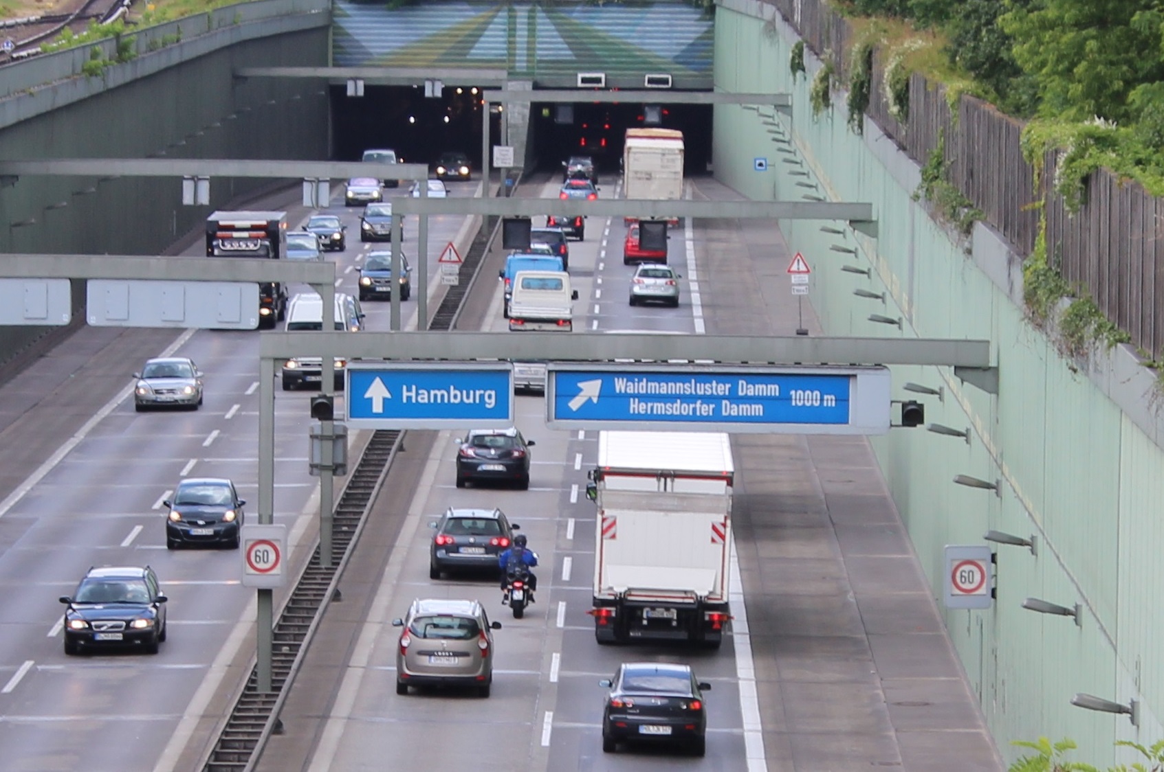 nach dem Tunnel auf beiden Fahrbahnen Richtung Hamburg weitergeht.